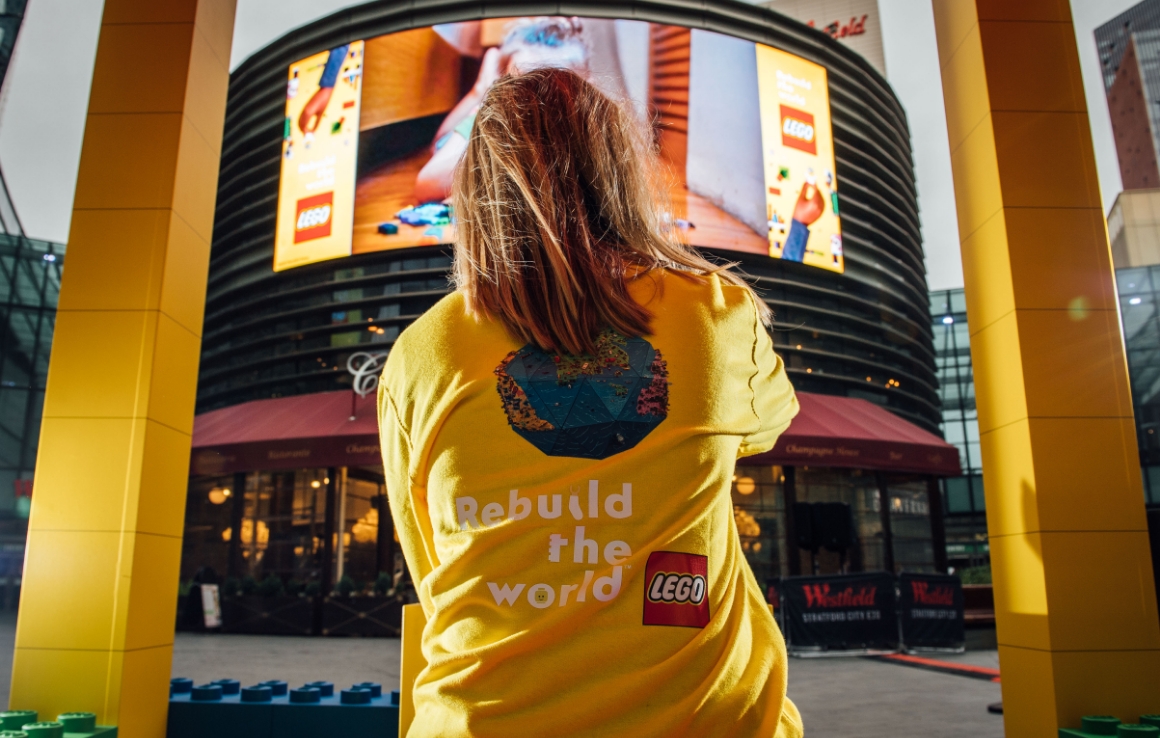 Brand ambassadors, kitted out in LEGO branded clothing, were on hand to help participants play. Users selected one of the three different LEGO sets to build, and we used live motion tracking to replicate the build visually on the large digital out of home screen so participants – and everyone else in the area – could see their creation coming together in real life. Once their creation was revealed for all to see on the giant digital screen, the activation ended with a call-to-action QR code displayed on the screen – large enough to be scanned at distance and ensuring a completely contact-free experience – which directed participants to the ‘Rebuild The World’ portal on the LEGO website.
